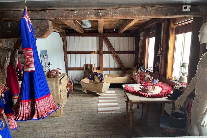 Meet a genuine Sámi guide dressed in traditional Sámi attire, known as a "kofte." Learn about the Coastal Sámi lifestyle, artifacts, and joik, as well as an in-depth look at Sámi history along the coast and in Tromsø. Discover how Sámi culture was represented at the World's Fair in Paris as early as 1889, attracting tourists to the Sámi camps in Tromsdalen. Gain insight into the impact of the Norwegianization period on the Sámi people and their journey back to pride in their cultural heritage. You'll also have access to the Northern Lights Exhibition and the Maritime Museum, where you can learn about the significance of the Northern Lights in Sámi mythology.